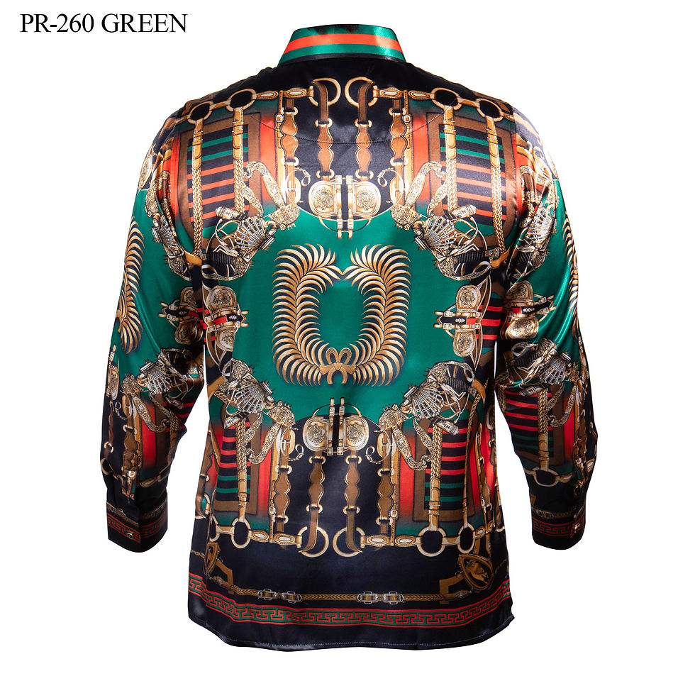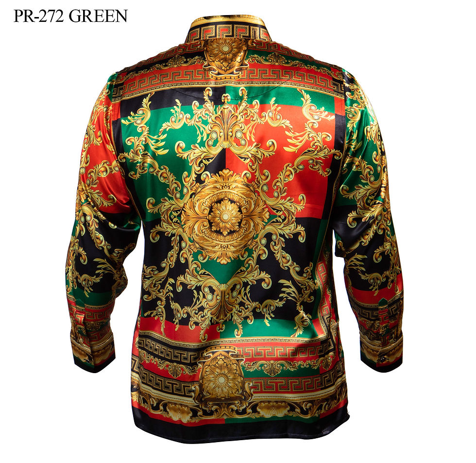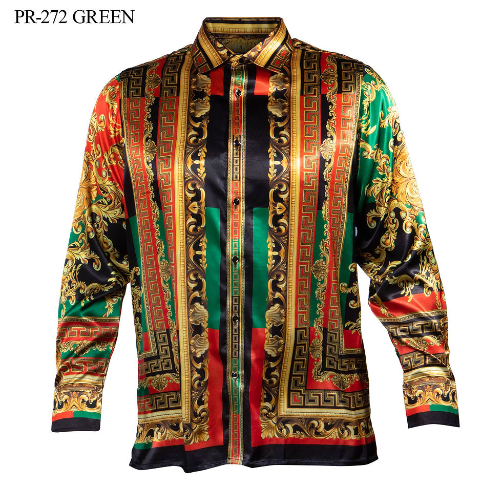 PR-272 I PRESTIGE LONG SLEEVE BAROQUE PRINT SHIRT I GREEN