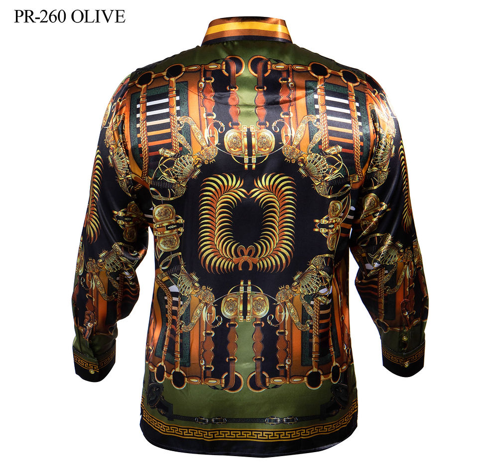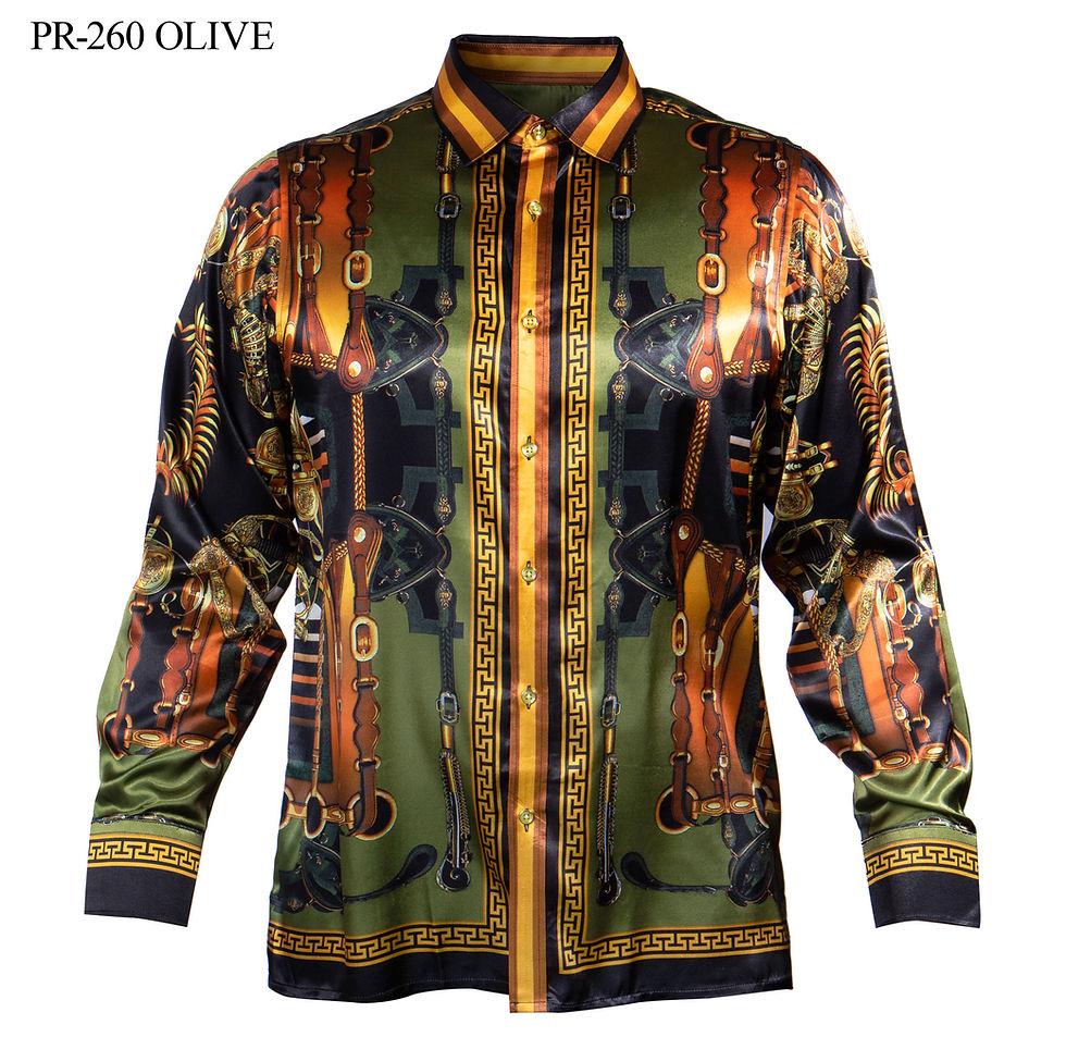 PR-260 I PRESTIGE LONG SLEEVE BELT PRINT SHIRT I OLIVE