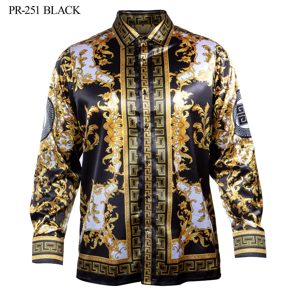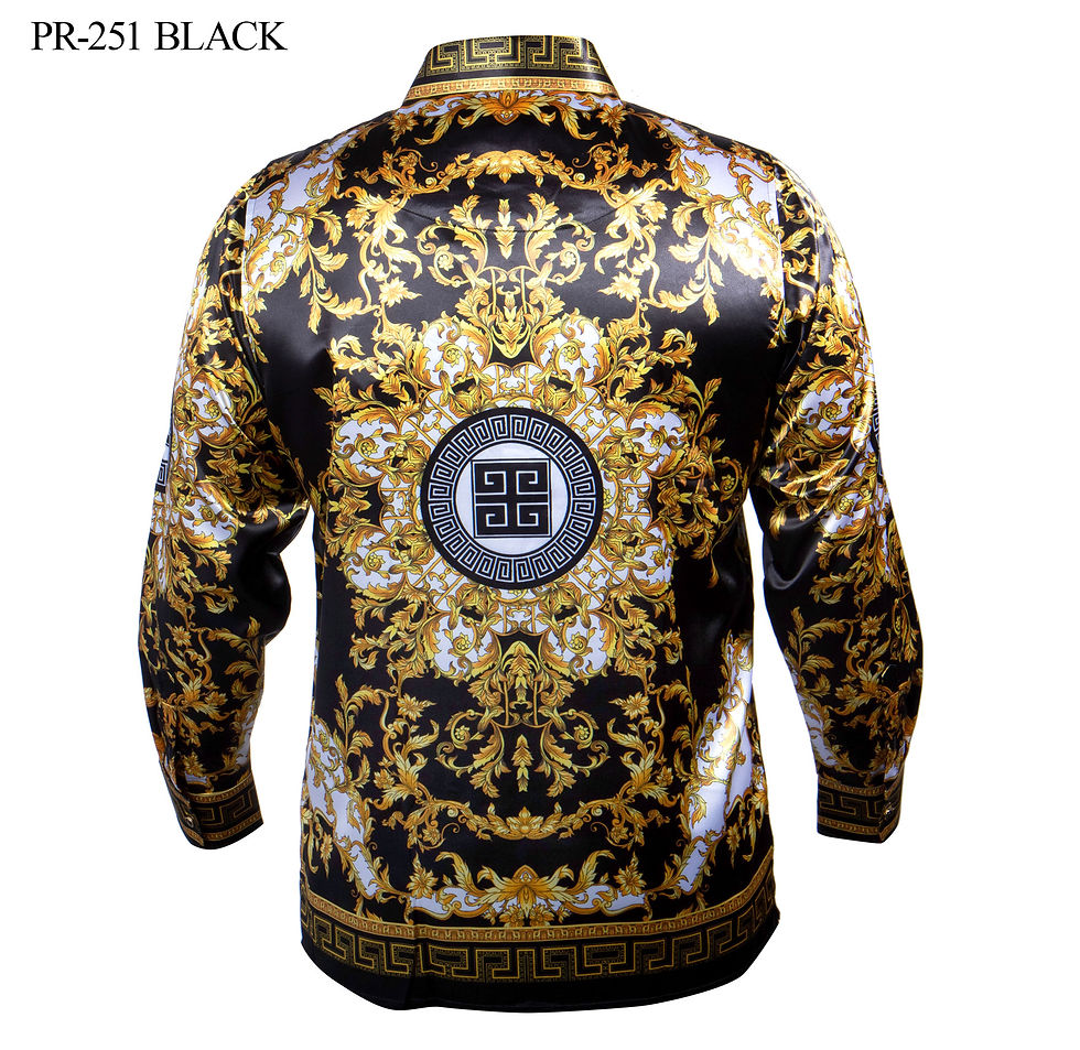 PR-251 I PRESTIGE LONG SLEEVE SATIN SHIRT I BLACK