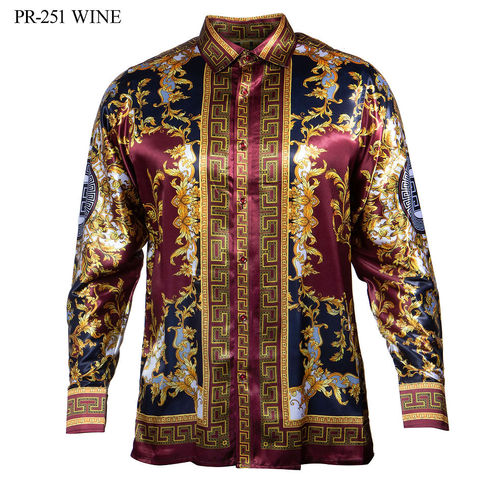 PR-251 I PRESTIGE LONG SLEEVE SATIN SHIRT I WINE