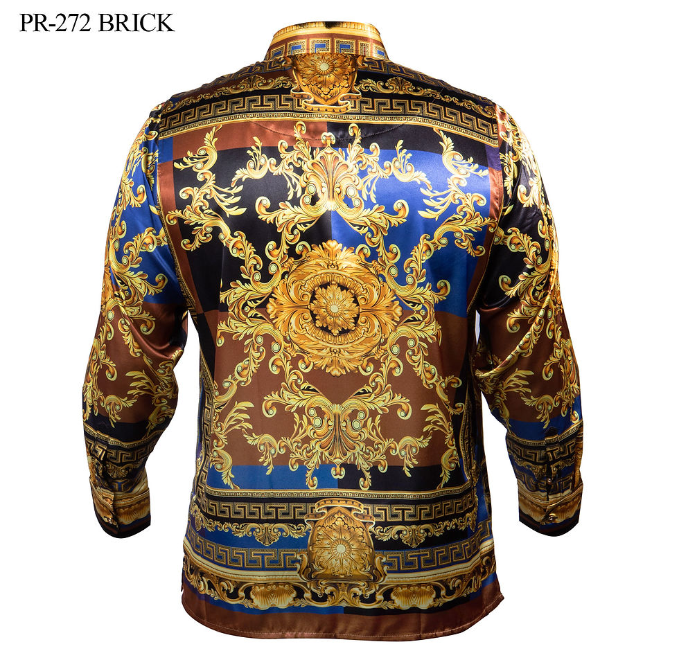 PR-272 I PRESTIGE LONG SLEEVE BAROQUE PRINT SHIRT I BRICK